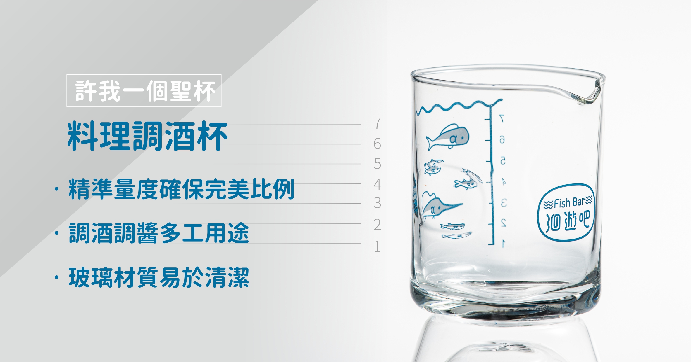 每刻度25cc,不管料理或是調酒,可愛魚圖玻璃杯,帶來好心情!